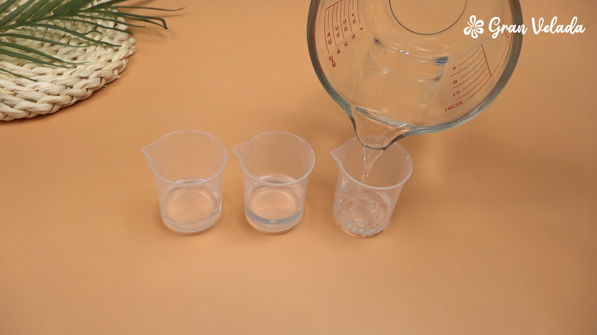 Vierte el alcohol de perfumería en un vasito medidor para preparar la mezcla base del ambientador.