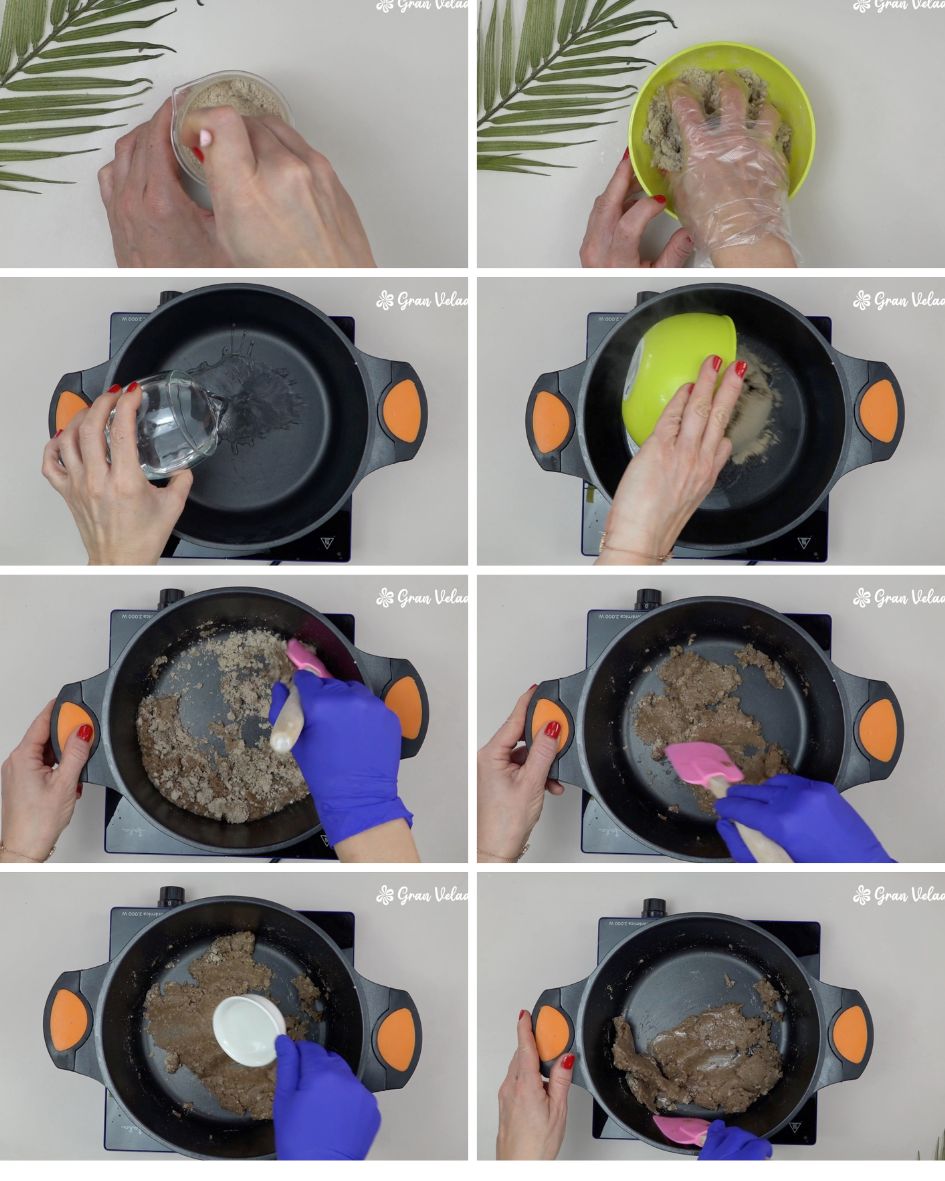 - Mezcla con agua caliente: Calienta ligeramente agua en un cazo o microondas y añade la pasta anterior. Remueve bien hasta que se disuelva completamente.