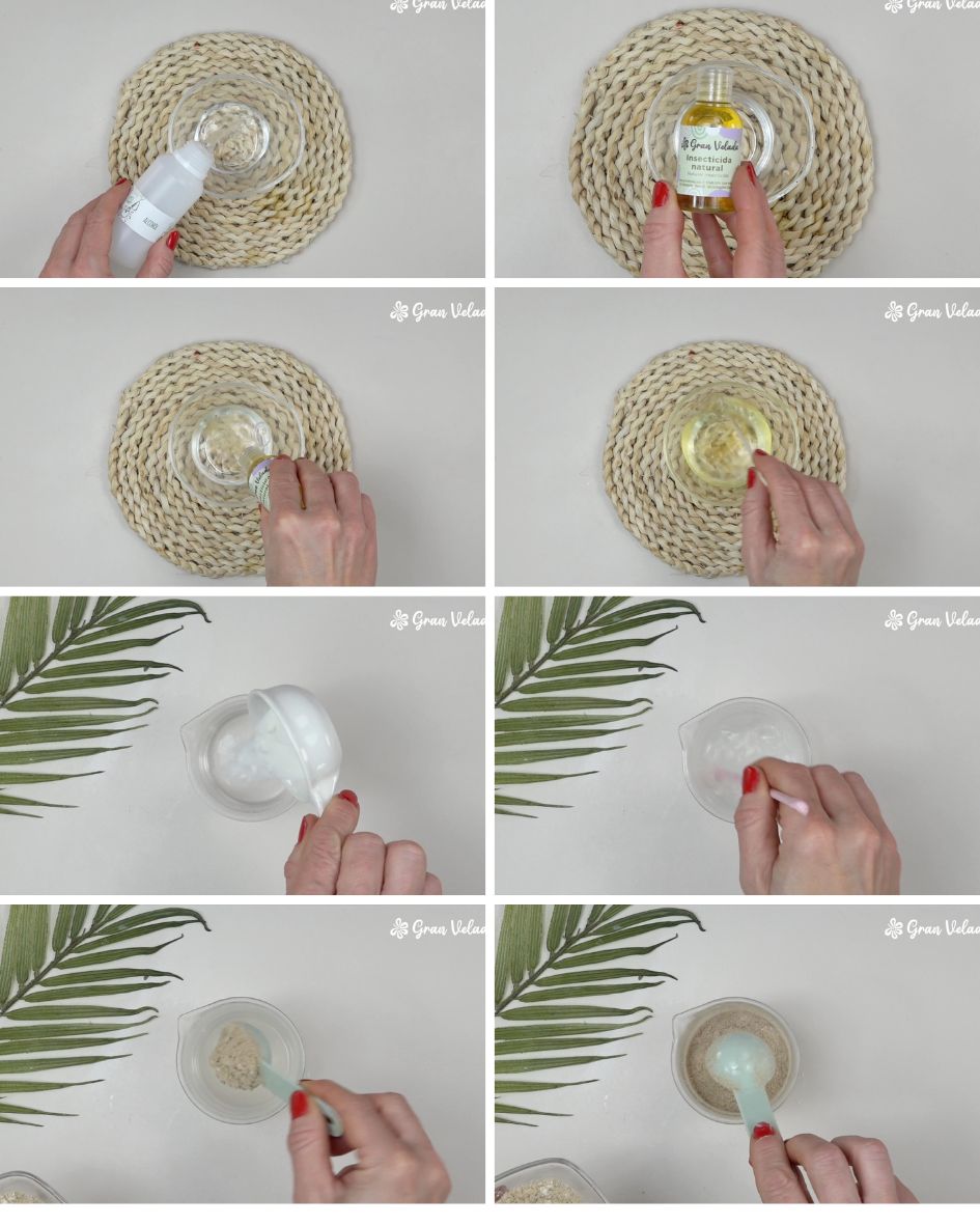 - Aroma final: Incorpora unas gotas adicionales de la mezcla de alcohol e insecticida para reforzar el aroma. Si deseas, añade también citronela seca triturada.