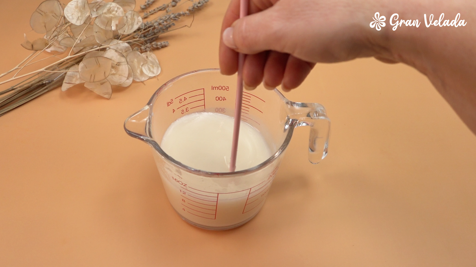 Añade unas gotas de esencia aromática de coco y mezcla suavemente para que el aroma quede repartido. - Añadir el colorante opacador