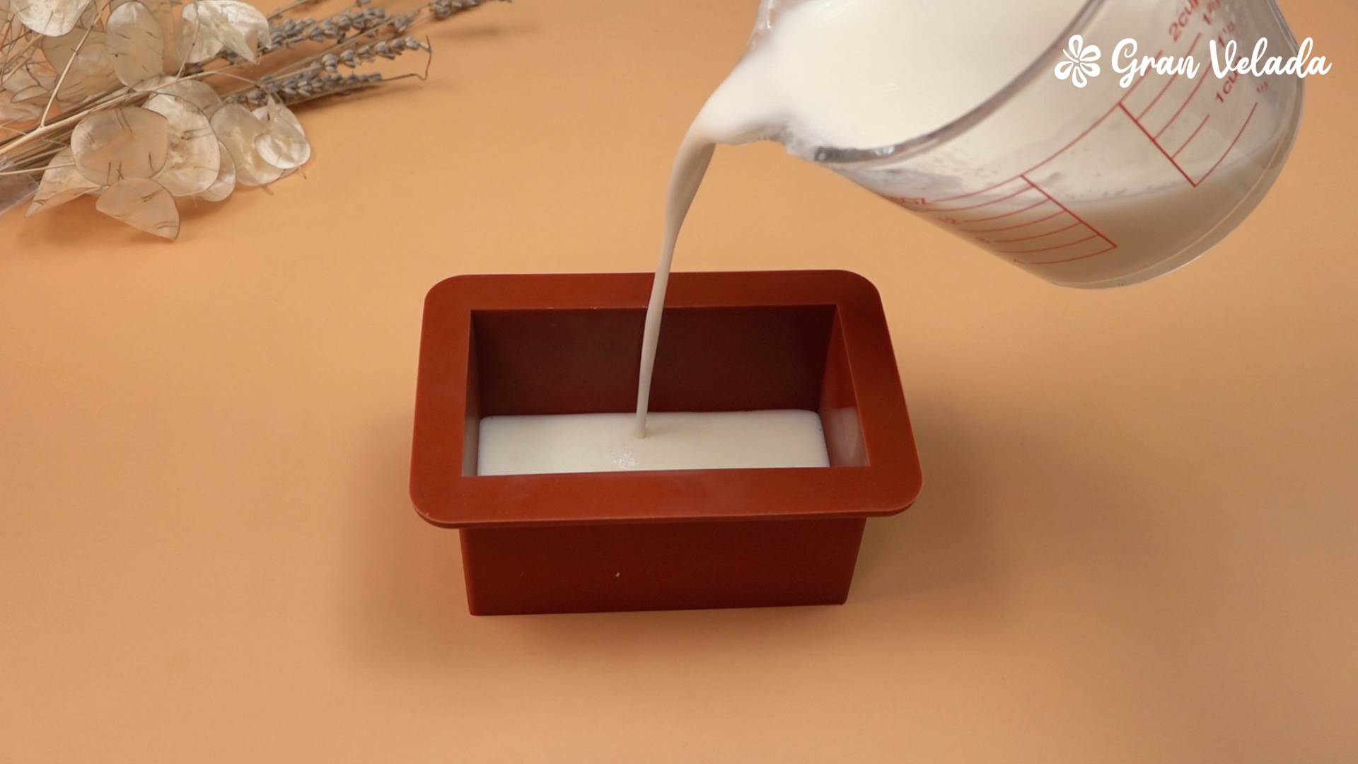 Incorpora el colorante blanco poco a poco hasta conseguir el nivel de opacidad deseado. - Verter el jabón en el molde