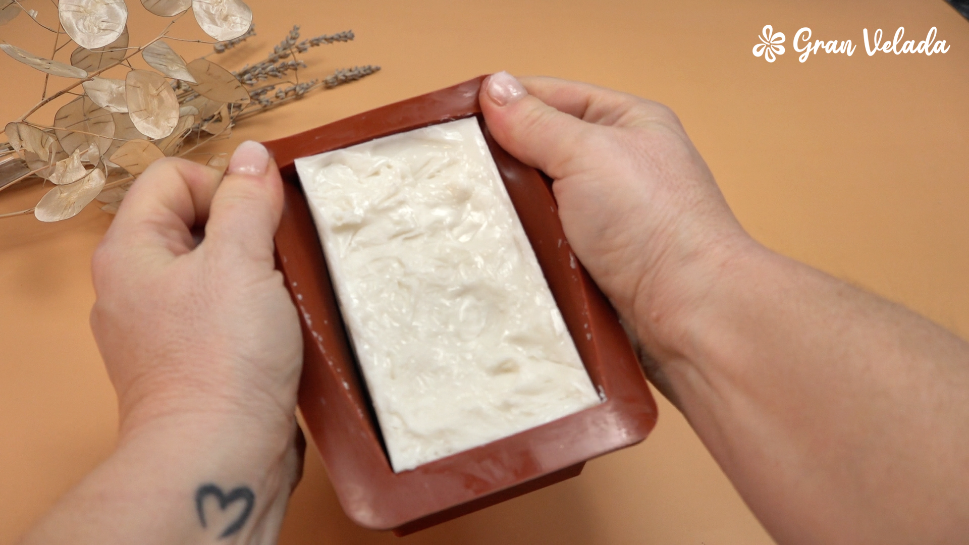 Una vez completamente sólido, desmolda el jabón con cuidado.