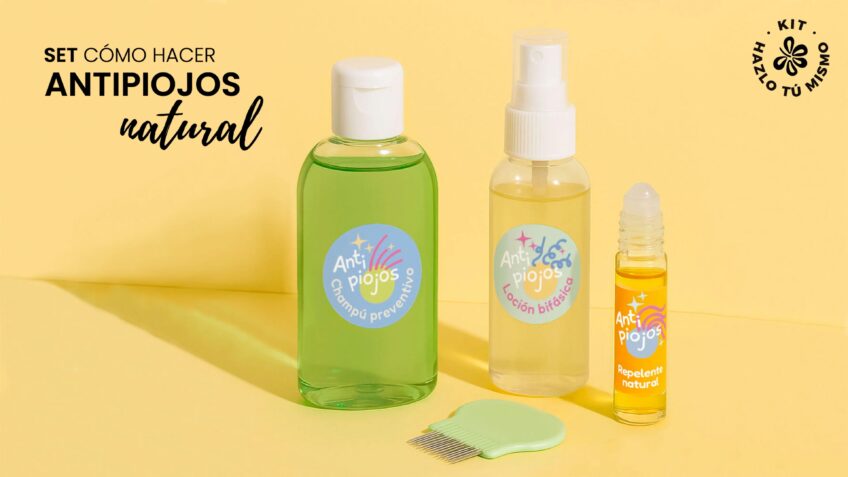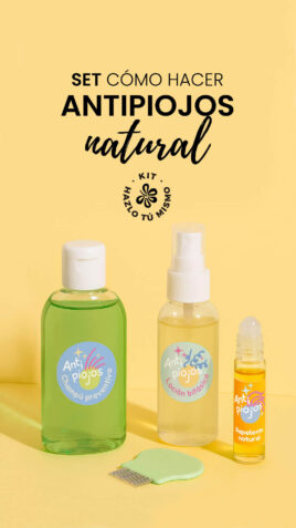 Este set incluye todos los ingredientes y envases necesarios para elaborar en casa tus propios productos antipiojos. No necesitas comprar nada más: solo seguir las instrucciones.