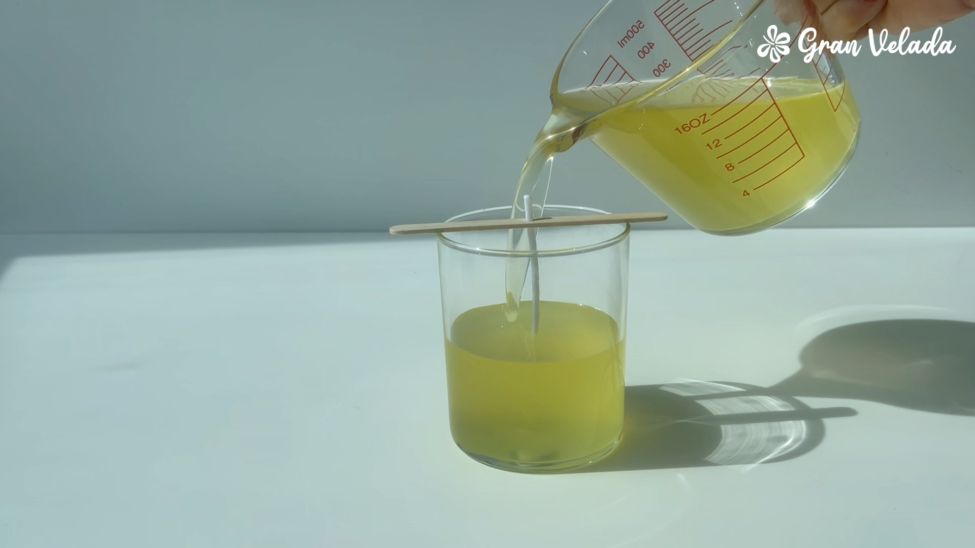 Vierte la cera en el vaso a unos 50–55 ºC.