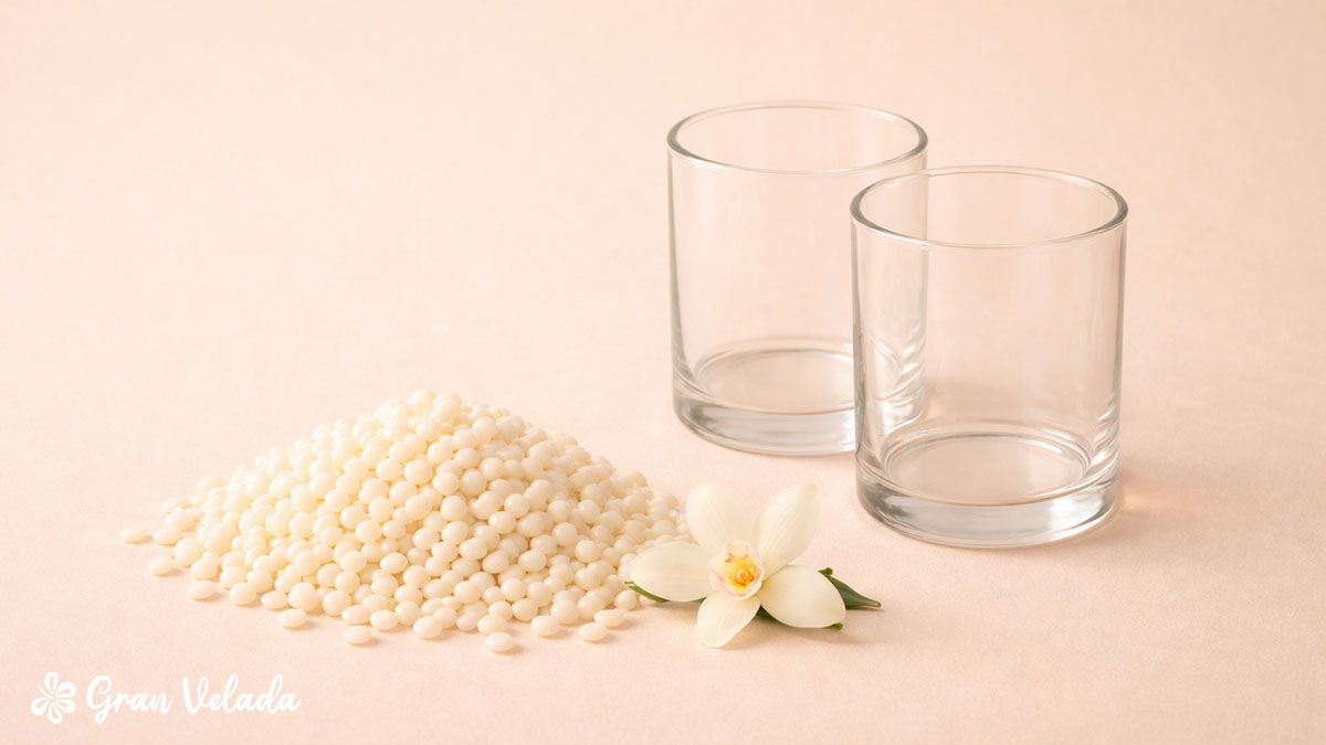 Se trata de materias primas y accesorios específicos para la fabricación de velas, seleccionados para que trabajen bien entre sí y en las proporciones adecuadas. Esto es importante, porque cuando empiezas, uno de los mayores problemas suele ser mezclar materiales que no encajan o usar cantidades incorrectas.
