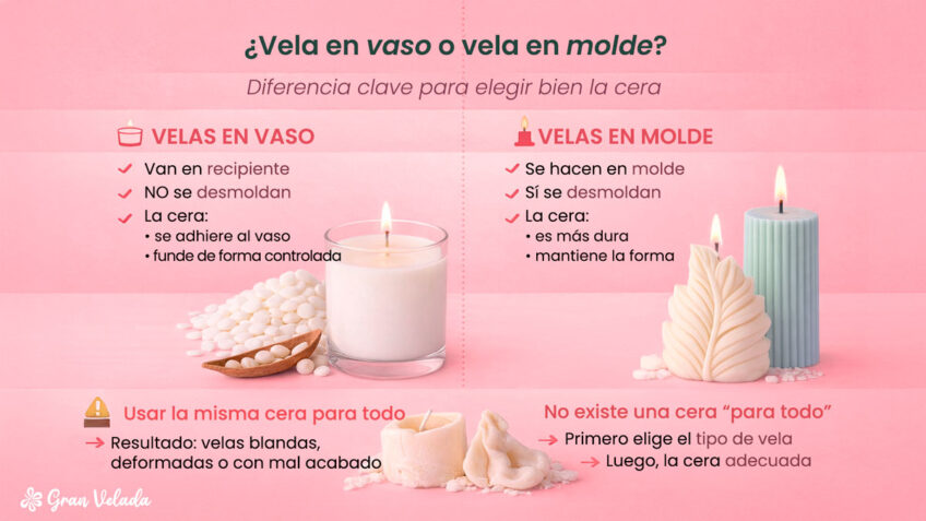 Intentar hacer una vela en vaso con una cera pensada para molde suele dar malos resultados. No porque la cera sea mala, sino porque no está diseñada para ese uso.