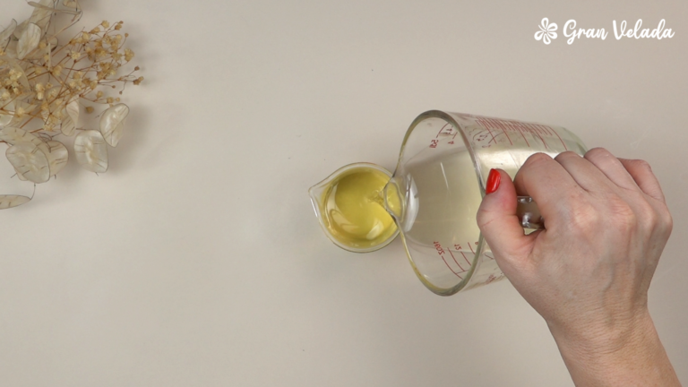 Incorpora la esencia, mezcla bien y vierte la preparación en el molde.