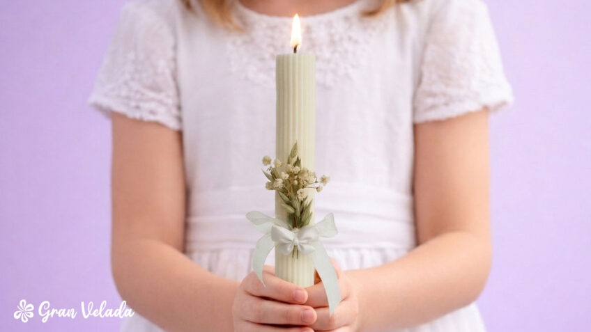 Hay detalles que consiguen transformar por completo una celebración, y el cirio de Comunión es uno de los más especiales. No solo aporta un toque elegante y delicado a la decoración, sino que además tiene un profundo significado simbólico: representa la luz de la fe que acompaña al niño o niña en un momento tan importante de su vida.