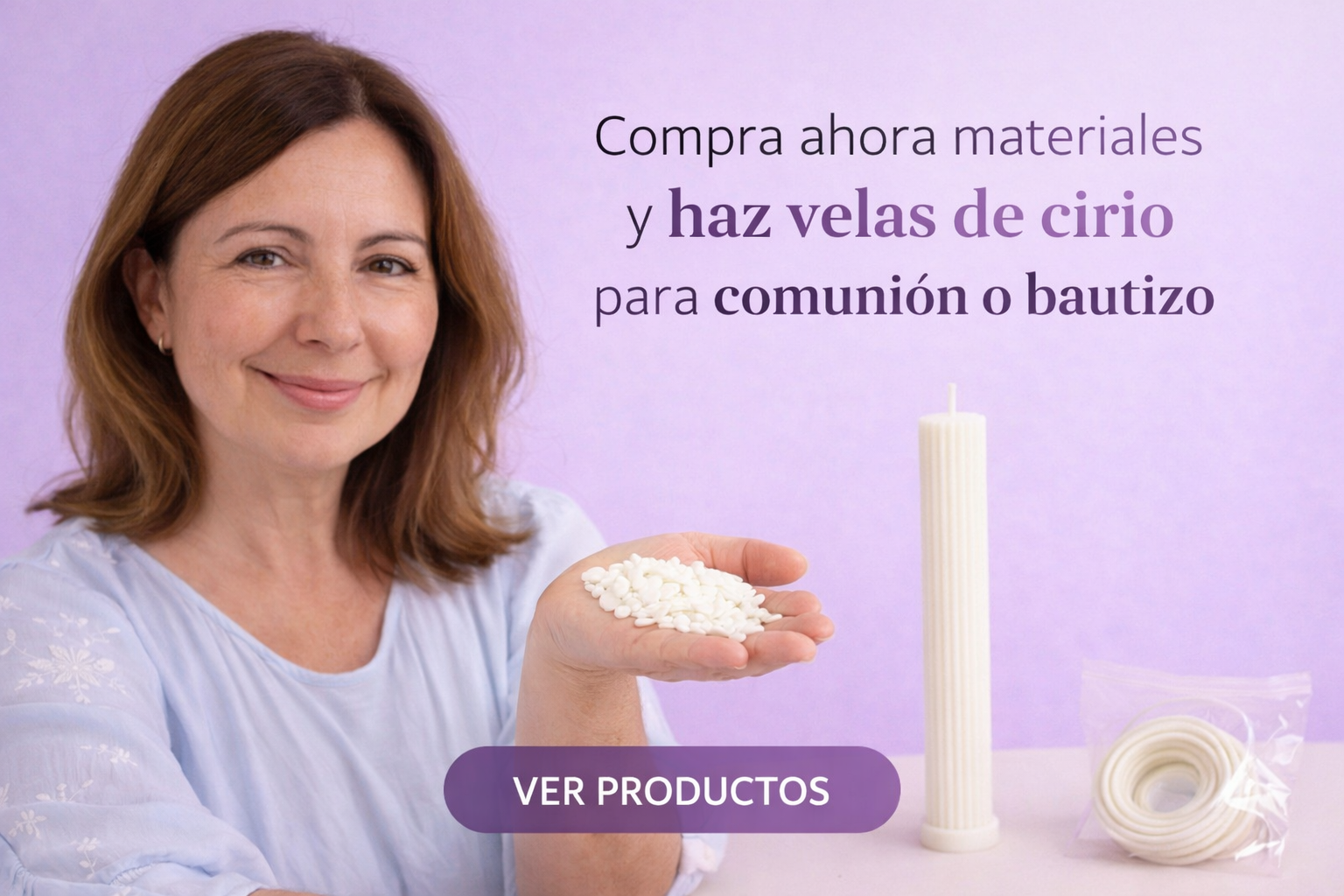 Si quieres hacer tus propias velas para comunión o bautizo, aquí tienes reunidos los materiales básicos para empezar paso a paso de forma sencilla.