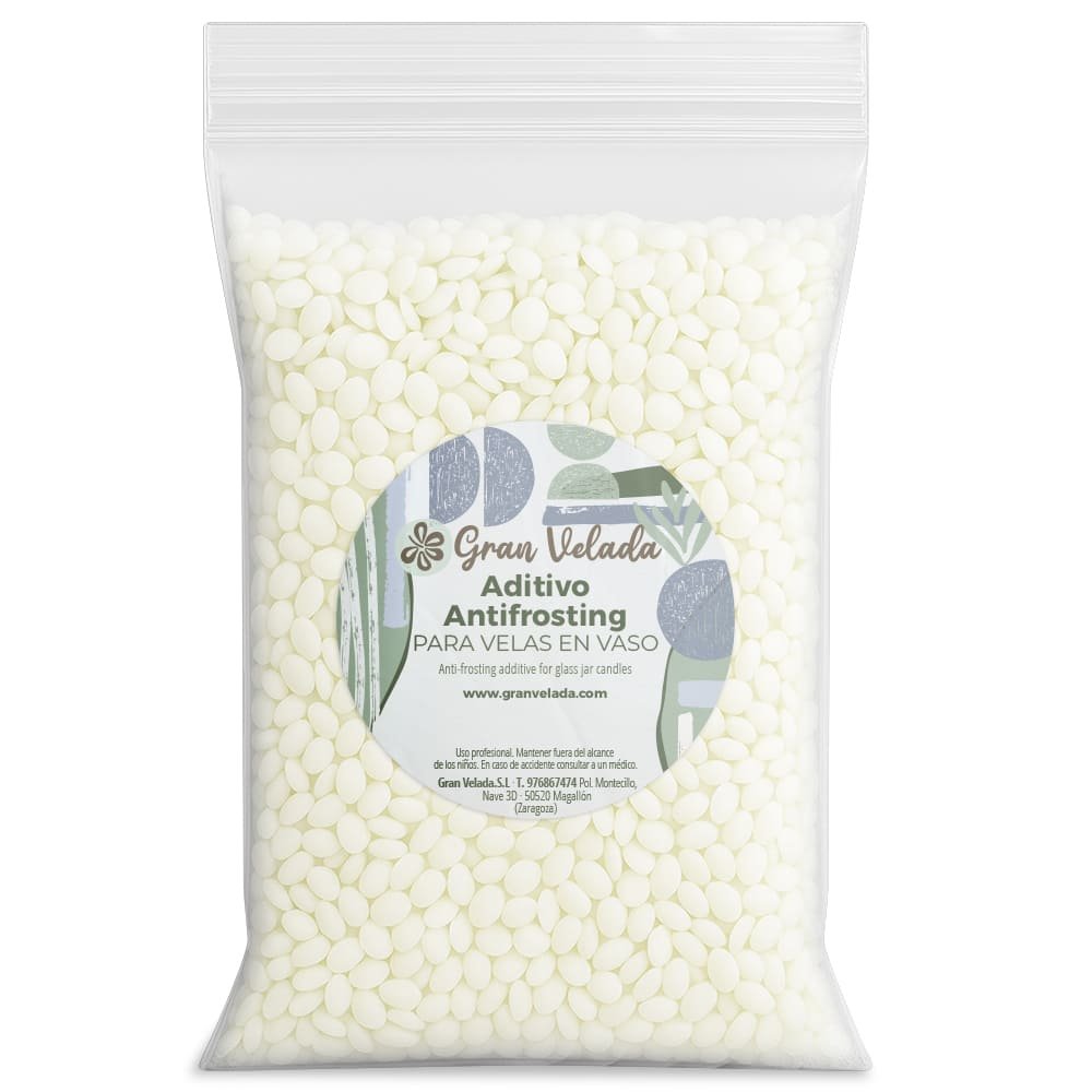 Aditivo antifrosting para velas, especialmente indicado para evitar el frosting en velas en vaso elaboradas con ceras vegetales como la soja. Ayuda a mejorar el acabado final reduciendo el aspecto cristalizado que puede aparecer tras el enfriado de la cera y favorece una mejor adherencia al vaso, ayudando a minimizar la aparición de burbujas y separaciones en las paredes del recipiente. Además, contribuye a fijar la fragancia y a estabilizar la mezcla, logrando un resultado más uniforme y profesional. Se presenta en formato de perlas y es muy fácil de usar, solo tienes que añadirlo a la cera fundida antes del vertido y mezclar bien hasta su completa integración.