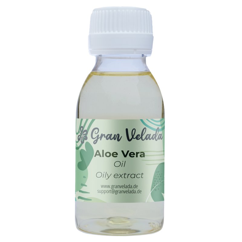 Aceite de aloe vera para uso cosmético. Con él podrás elaborar una amplia gama de cosméticos naturales para cuidar el cabello y la piel. El aceite de aloe vera que puedes comprar en Gran Velada es una maceración de las hojas de esta planta en aceite de girasol. Es ingrediente natural que destaca por sus propiedades antiinflamatorias y antioxidantes. El aceite de aloe vera para el cabello contribuye a evitar la caspa y el encrespamiento. Mientras, el aceite de aloe vera para la piel ayuda a calmarla. Además, es un gran activo antiedad. Este aceite es un ingrediente para formular jabones y cosméticos.