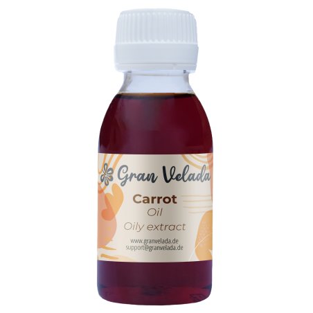 El aceite de zanahoria que puedes comprar en Gran Velada es un extracto oleoso para incorporar en recetas o fórmulas cosméticas. Como ingrediente cosmético es un gran aliado, ya que puedes incorporarlo en productos para proteger y cuidar la piel expuesta al sol, realzar el bronceado y proteger la piel y el cabello de la oxidación.