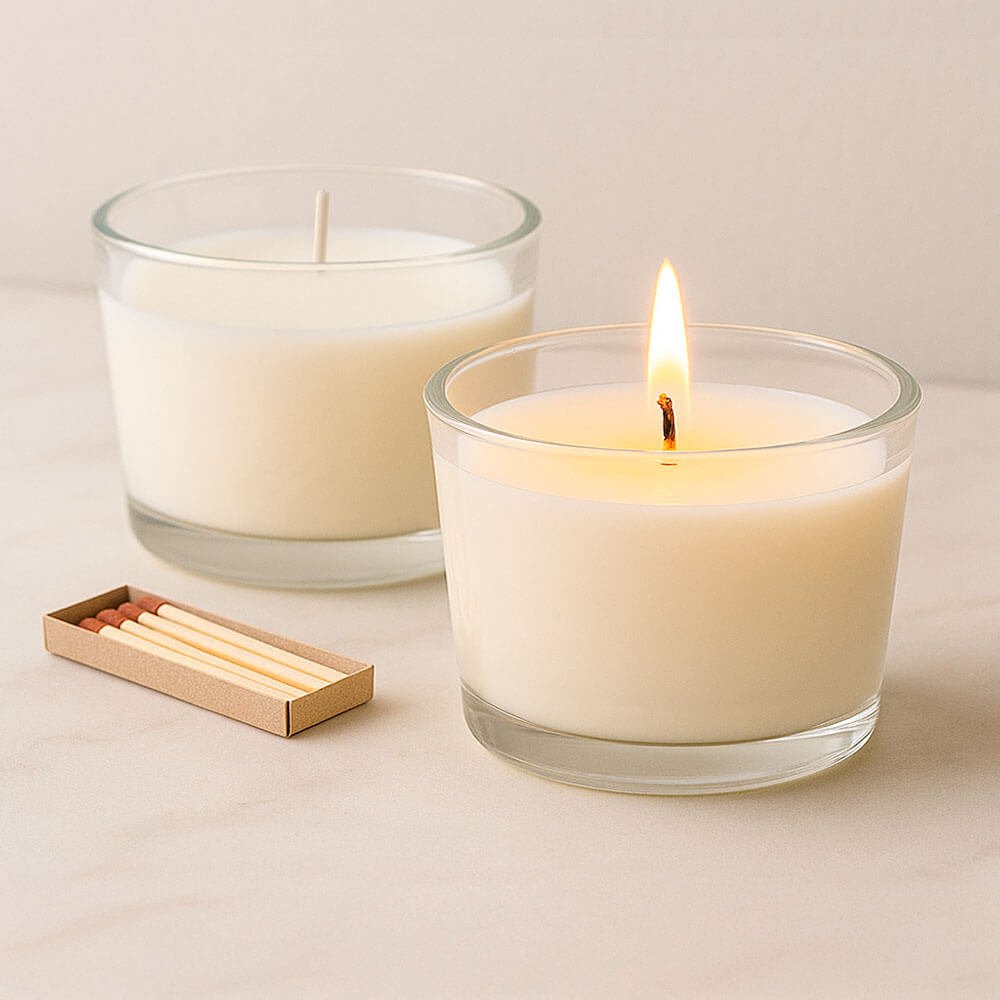 Vaso de cristal para velas aromaticas, en pack de 12 unidades, perfecto para hacer velas aromáticas. Se vende vacío, es de cristal transparente y resistente al calor. ¿Qué necesitas para hacer velas aromáticas en vaso? Cera, esencia aromática, colorante y mecha encerada. Para que el resultado sea aún más original puedes decorar el vaso con las pegatinas que encontrarás en nuestra tienda online. Hay que tener en cuenta que el vaso no se rellena hasta arriba porque se debe dejar espacio para la mecha. ¡Truco! Para que las velas queden perfectas es importante que el vaso no esté frío, así que puedes calentarlo previamente. De esta forma se evita que haya mucho contraste de temperatura entre la cera caliente y el cristal frío.