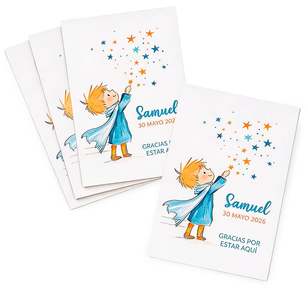 La tarjeta príncipe es una opción ideal para preparar detalles originales para comuniones, bautizos o celebraciones infantiles. Se trata de una tarjeta decorativa diseñada para presentar una velita de forma elegante y crear un recuerdo bonito para los invitados.