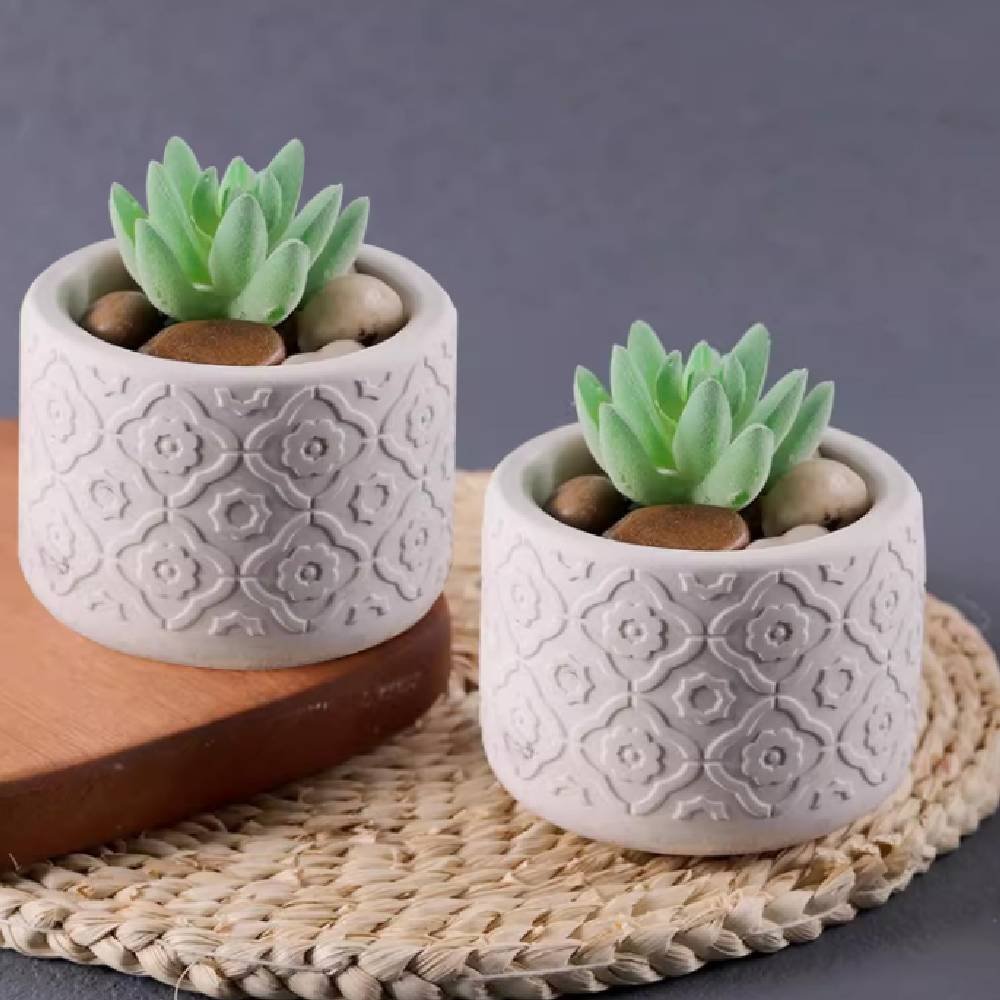 Este molde de silicona permite crear recipientes decorativos con relieve que destacan por su diseño elegante y versátil. Es perfecto tanto para elaborar velas en vaso como para hacer macetas de cemento o yeso, adaptándose a diferentes usos dentro del mundo DIY.