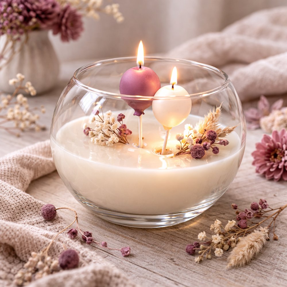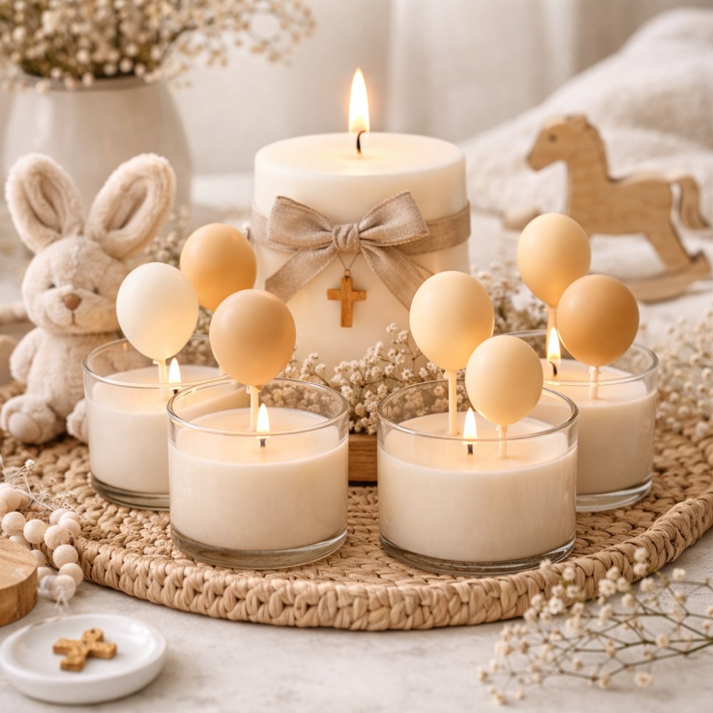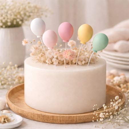 Este molde de globos para velas es perfecto para crear pequeños detalles que puedes incorporar en velas más grandes o centros decorativos. Por ejemplo, puedes combinarlos con figuras como ositos, flores o elementos infantiles para conseguir composiciones originales y muy llamativas.