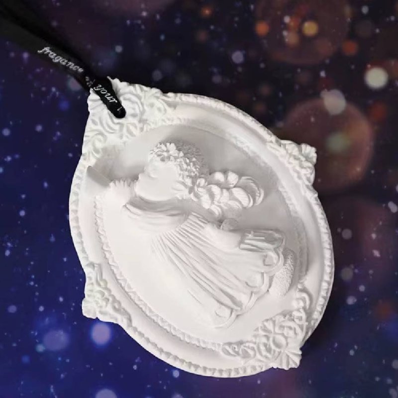 Este molde de silicona con diseño de angelito con trompeta es una opción ideal para elaborar piezas aromáticas con un estilo cuidado y lleno de detalles. Su formato ovalado con marco decorativo en relieve permite obtener figuras elegantes, perfectas para ambientadores colgantes o pequeños elementos decorativos con aroma.