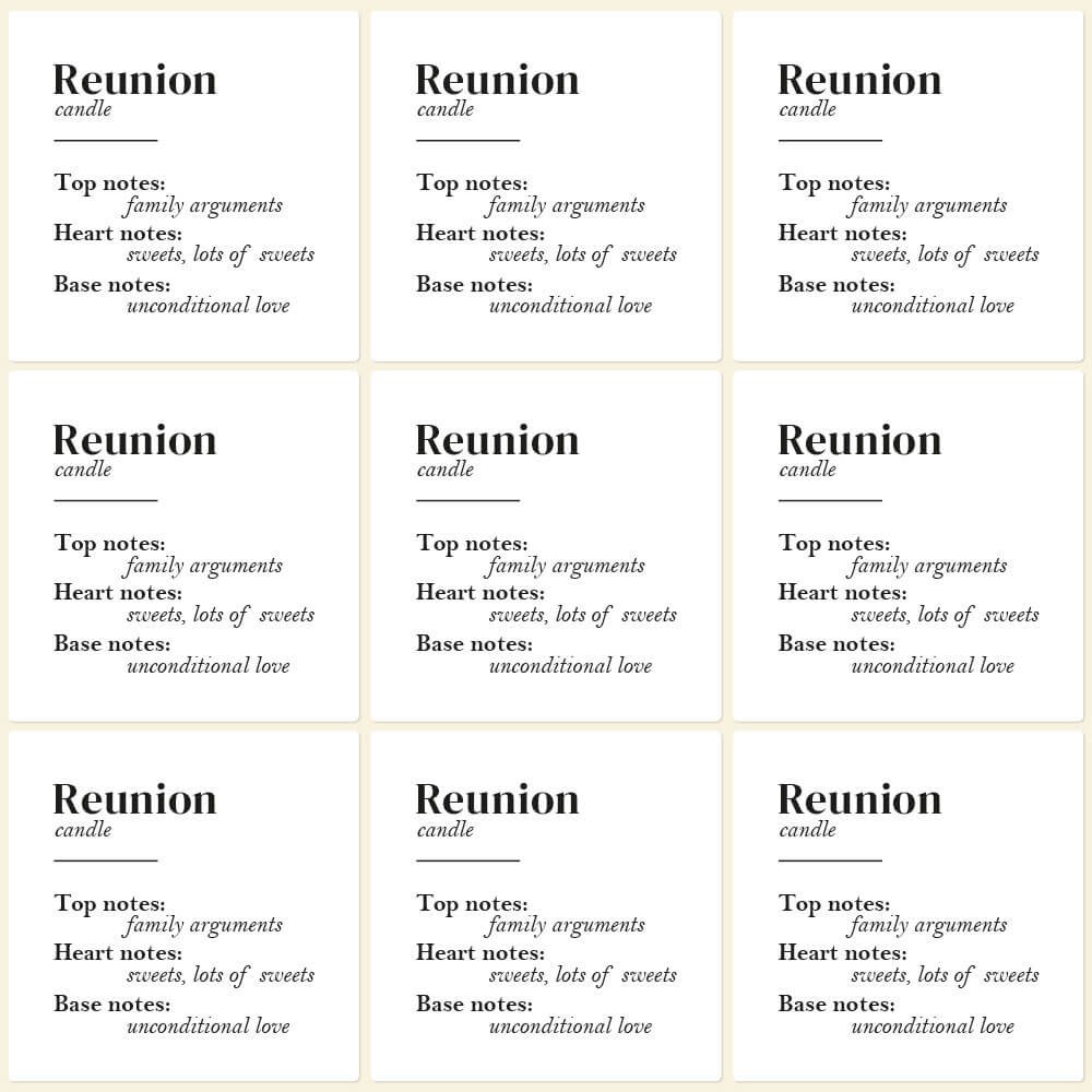 Pegatinas navideñas para velas en vaso · Reencuentro, ideales para personalizar velas en vaso con un mensaje cálido de temporada. Estas pegatinas para velas se aplican en segundos sobre superficies lisas, perfectas para crear series de Navidad, packs regalo y detalles DIY. Una forma rápida y limpia de dar un toque festivo a tus velas.