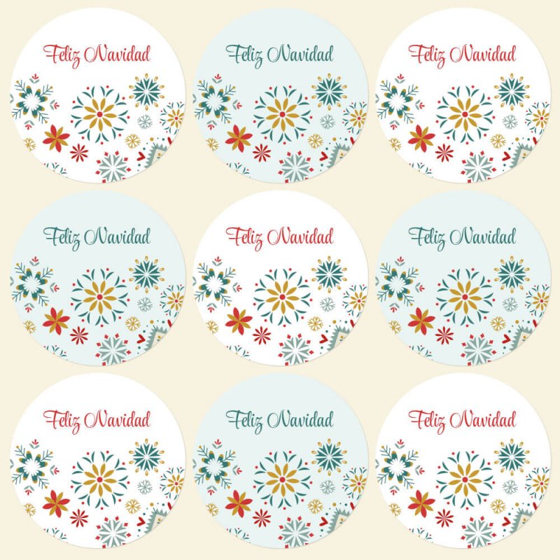 Estas pegatinas para velas con diseño de copos geométricos y mensaje “Feliz Navidad” son una forma rápida y bonita de personalizar tus velas DIY. Funcionan como etiquetas para velas de Navidad en vasos y tarros, ideales para packs regalo, cestas navideñas, mercadillos o para decorar tus creaciones de forma sencilla. Su formato redondo de 5 cm se adapta genial a la mayoría de velas en vaso y aporta un acabado elegante y festivo.