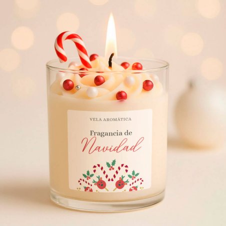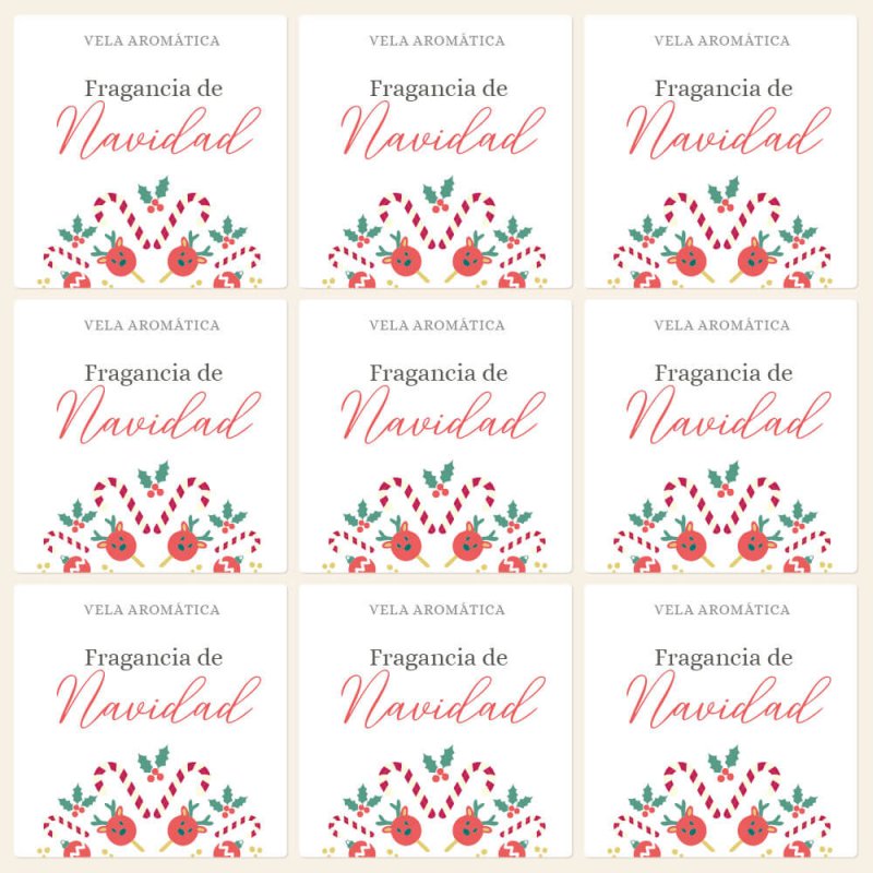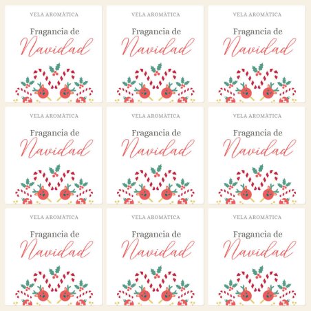 Estas pegatinas para velas con el texto “Vela aromática · Fragancia de Navidad” y un diseño dulce de bastones de caramelo, pequeños frutos rojos y hojas de acebo, son perfectas para dar un toque navideño muy tradicional a tus creaciones. Funcionan como etiquetas para velas de Navidad en vasos y tarros, ideales para mercados, packs regalo, cestas y series aromáticas de temporada. Su formato cuadrado 6 × 6 cm se adapta a la mayoría de vasos estándar y aporta un acabado cuidado y festivo.