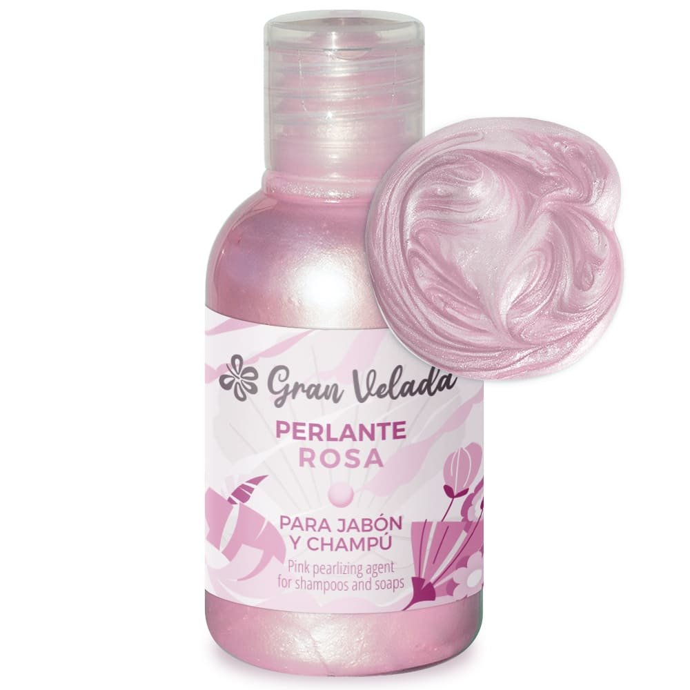 Líquido perlante rosa para jabón, champú y gel, también conocido como perlante líquido rosa o líquido perlado rosa. Este aditivo perlante rosa se usa para aportar color perla rosa y efecto nacarado al champú, gel de ducha, jabón líquido casero o jabón de glicerina. Añadiéndolo en frío a estos productos conseguirás un tono perlado en todos tus productos de higiene. Es importante que el jabón líquido o sólido tenga transparencia para que se pueda apreciar el efecto nácar.