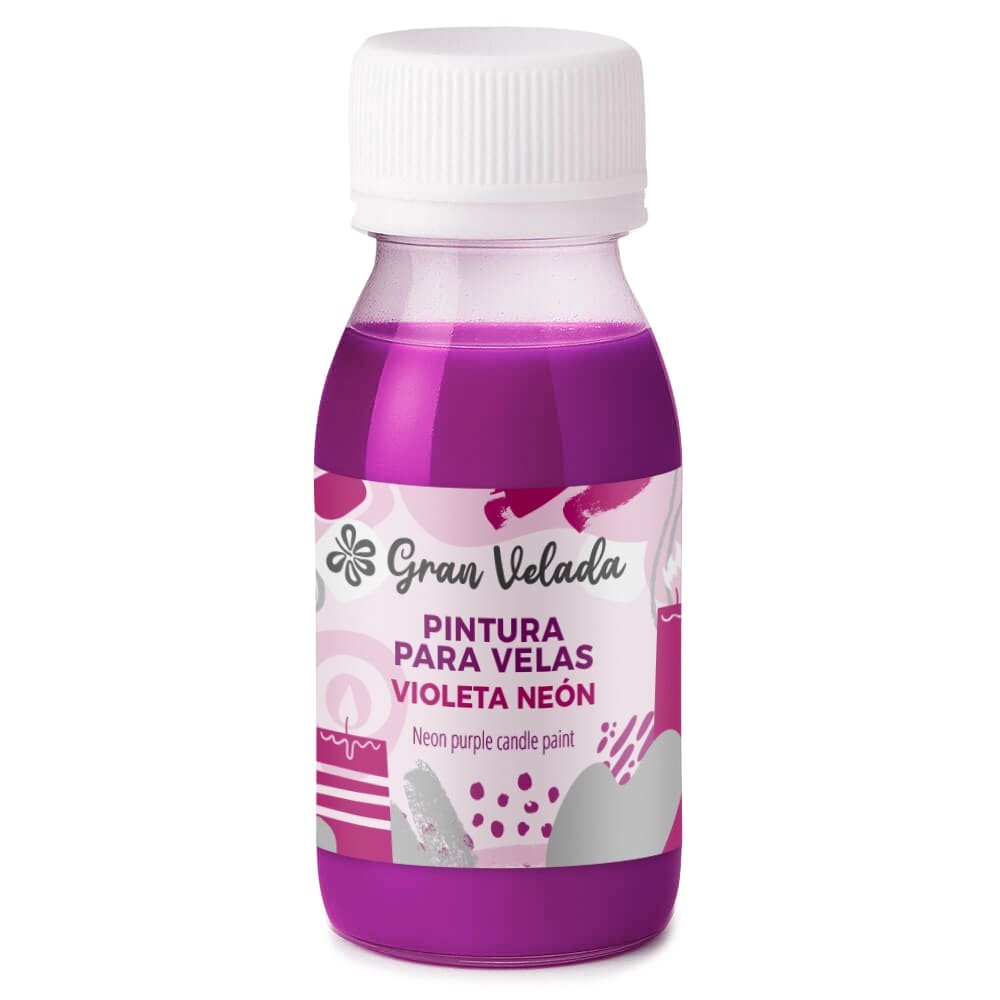Pintura para velas violeta neón, ideal para pintar sobre superficies de cera. Con ella podrás decorar las velas y fanales que hagas en casa. La pintura para velas que puedes comprar en Gran Velada tiene formato líquido y es muy sencilla de usar. Solo tienes que agitarla y extenderla con un pincel o una esponja sobre la superficie que quieres pintar. Es de secado rápido. También puedes ayudarte de una plantilla para conseguir creaciones totalmente personalizadas. La pintura para velas es una de las formas más sencillas de renovar la imagen de las velas que tengas en casa. ¡Consíguela fácilmente a través de nuestra tienda online!.