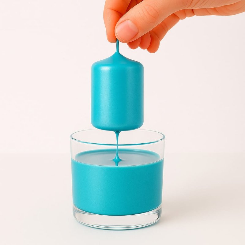 Recuerda que si la vela base era de colores oscuros es recomendable darle varios baños de inmersión. En este caso, hay que dejar secar por completo entre una inmersión y otra.