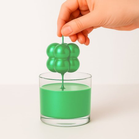 El barniz verde esmeralda metalizado para velas es perfecto para dar un nuevo aspecto a tus creaciones. Con un solo baño de inmersión, puedes transformar una vela blanca en una pieza decorativa con acabado neón. Su fórmula especial no interfiere en la combustión ni genera olores, lo que lo convierte en un producto seguro y eficaz para decorar velas.