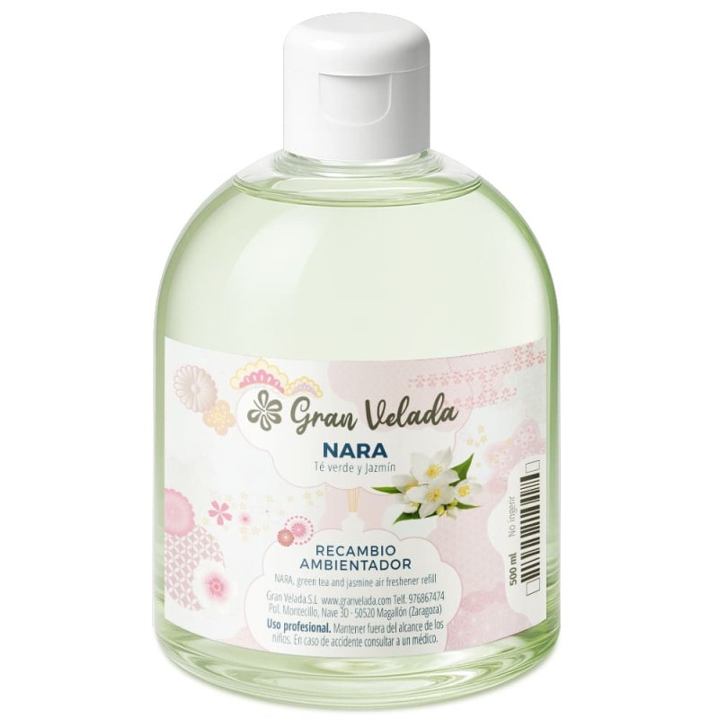 El recambio ambientador NARA (Té verde-Jazmín) se inspira en la tradición japonesa y combina la frescura herbal del té verde con la delicadeza floral del jazmín. Su color verde pistacho evoca naturaleza y equilibrio, asociado en colorterapia con la serenidad y la renovación. Perfecto para mikados, ambientadores en spray, eléctricos o para el coche, así como para perfumar sales aromáticas y popurrí. Un recambio versátil y elegante que llenará tus espacios de armonía y frescor.