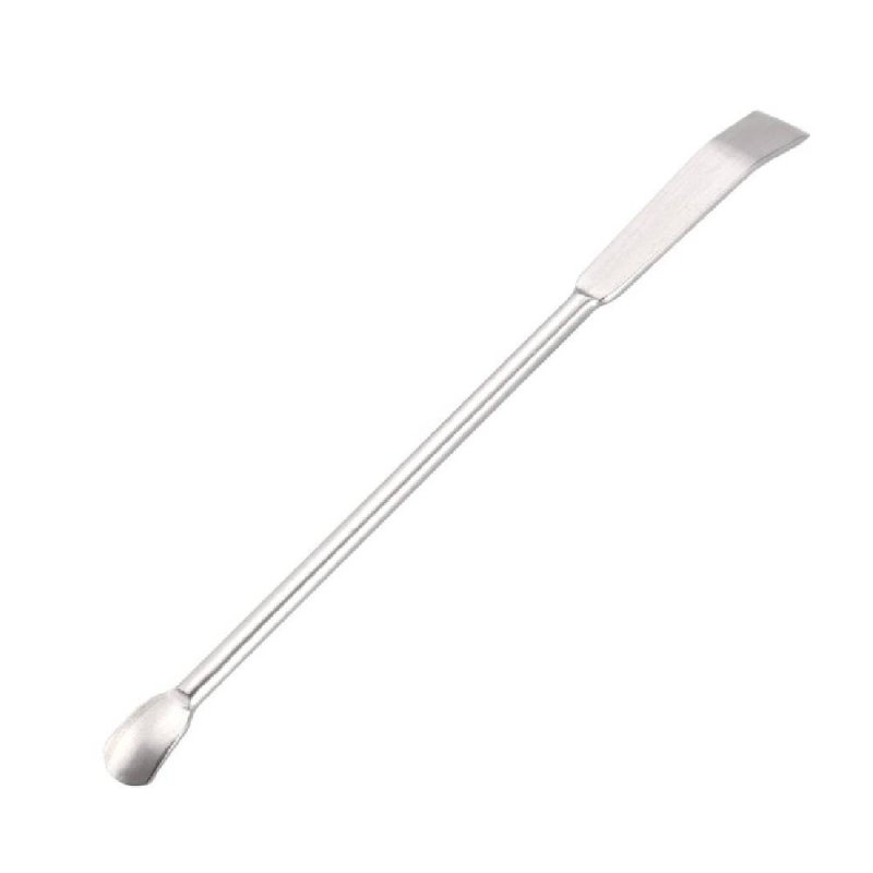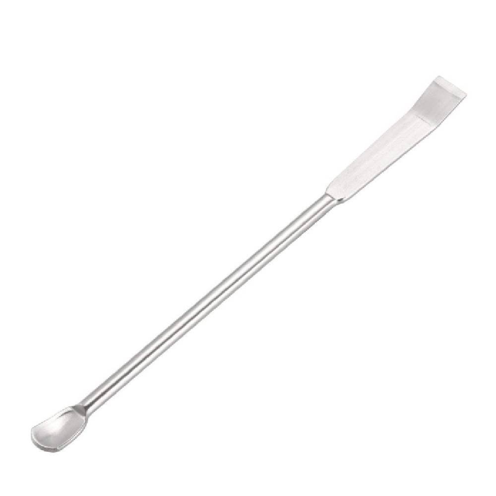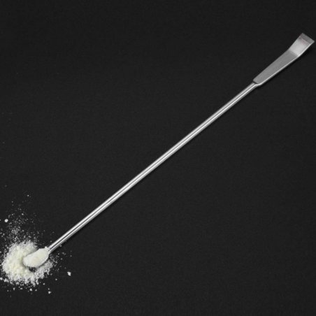 Esta herramienta es de doble uso: en un extremo incorpora una cucharilla y en el otro un raspador en forma de lámina metálica. Gracias a este diseño, resulta muy útil para recoger muestras, dosificar y también para nivelar, arrastrar o trasladar el producto con mayor control durante la preparación.
