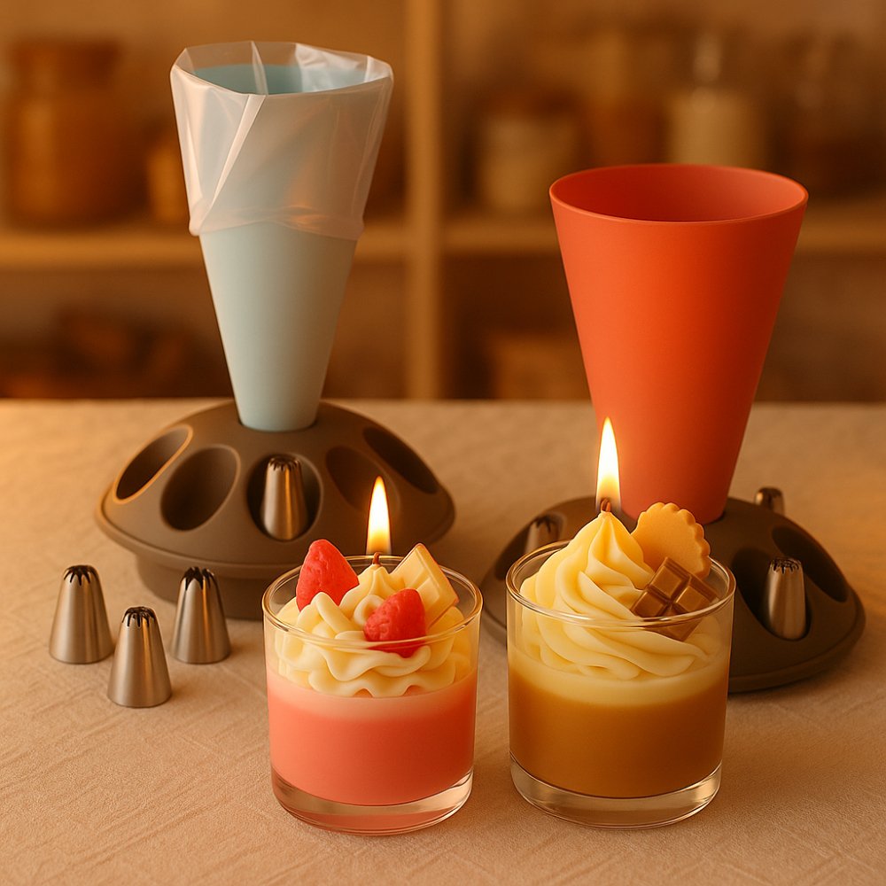 Es el complemento perfecto para proyectos de velas decorativas con acabado de repostería: copetes de “nata”, rellenos bicolor, detalles de galleta o fruta de cera, etc. Compatible con mangas desechables y boquillas metálicas estándar.