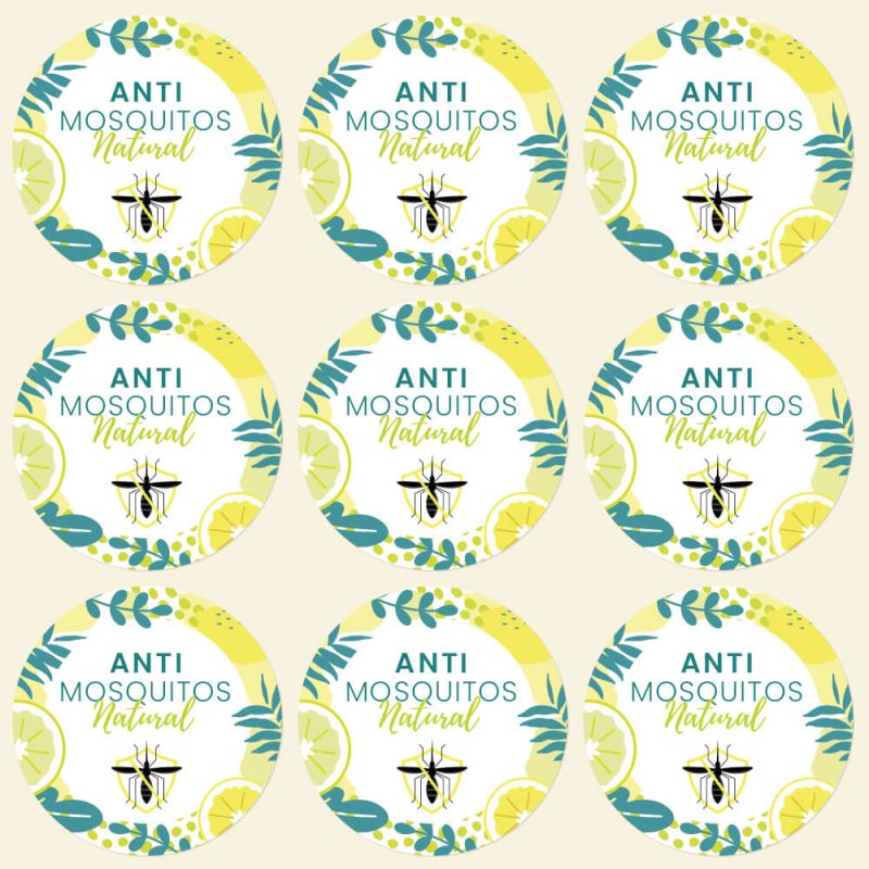 Les autocollants antimoustiques naturels sont parfaits pour identifier visuellement et de manière attrayante tes créations répulsives maison. Chez Gran Velada, tu trouveras ce modèle au design frais et citronné, idéal pour étiqueter :
