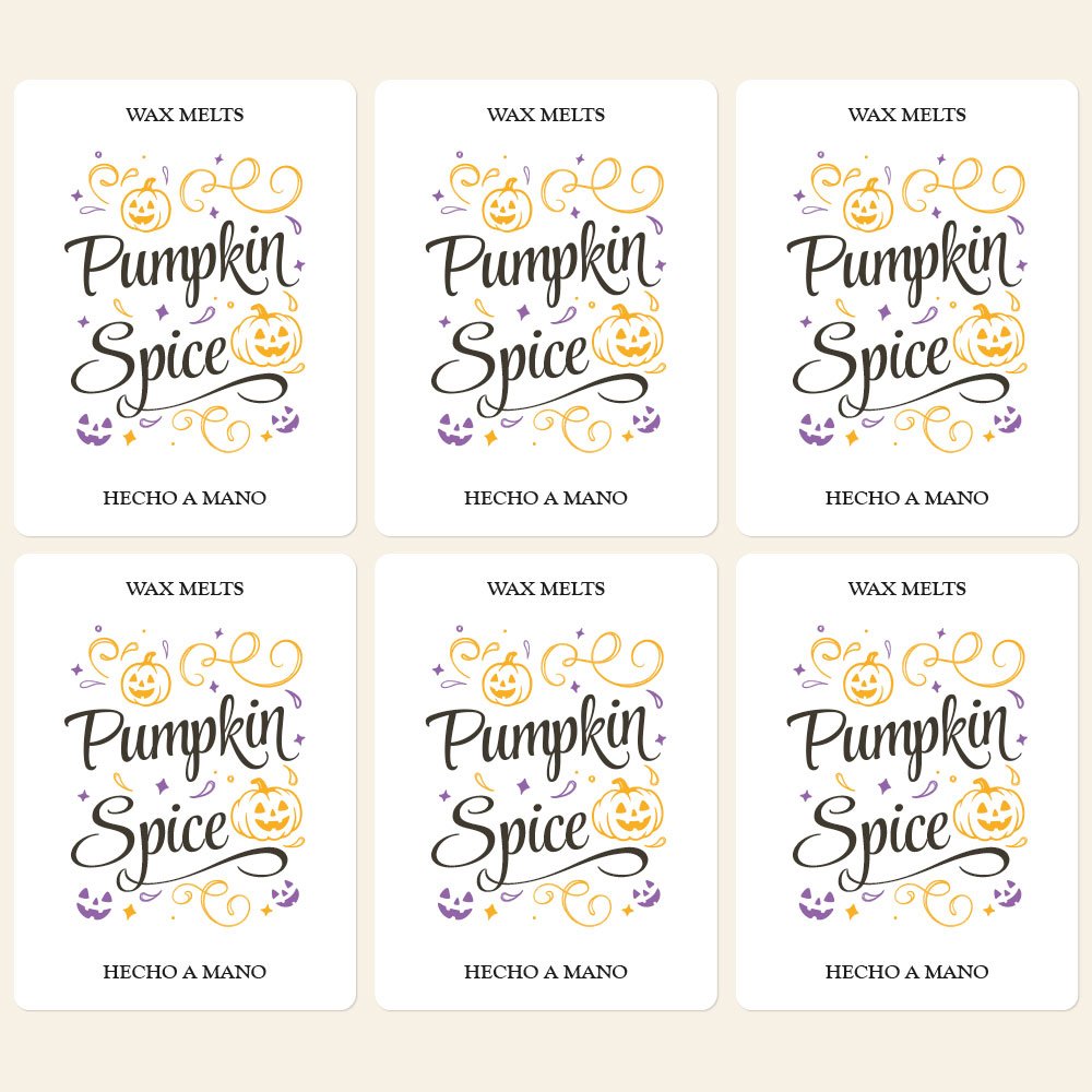 Pack de étiquettes pour wax melts “Pumpkin Spice”, au style automnal et à la thématique Halloween. Elles apportent une touche chaleureuse et professionnelle à vos présentations. Imprimées en couleur sur papier adhésif résistant, avec une excellente adhérence sur clamshells et autres contenants. Vendues en pack de 6 unités, toutes du même modèle.