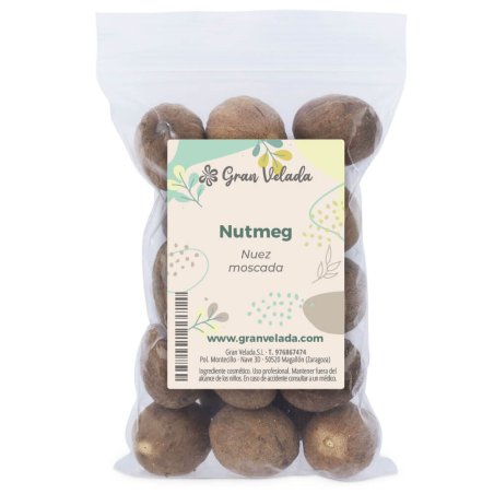 Sur la boutique en ligne de Gran Velada, vous pouvez acheter de la noix de muscade en grain de qualité. Choisissez la quantité souhaitée et recevez-la chez vous avec un large choix de plantes, graines et épices pour enrichir vos cosmétiques DIY.