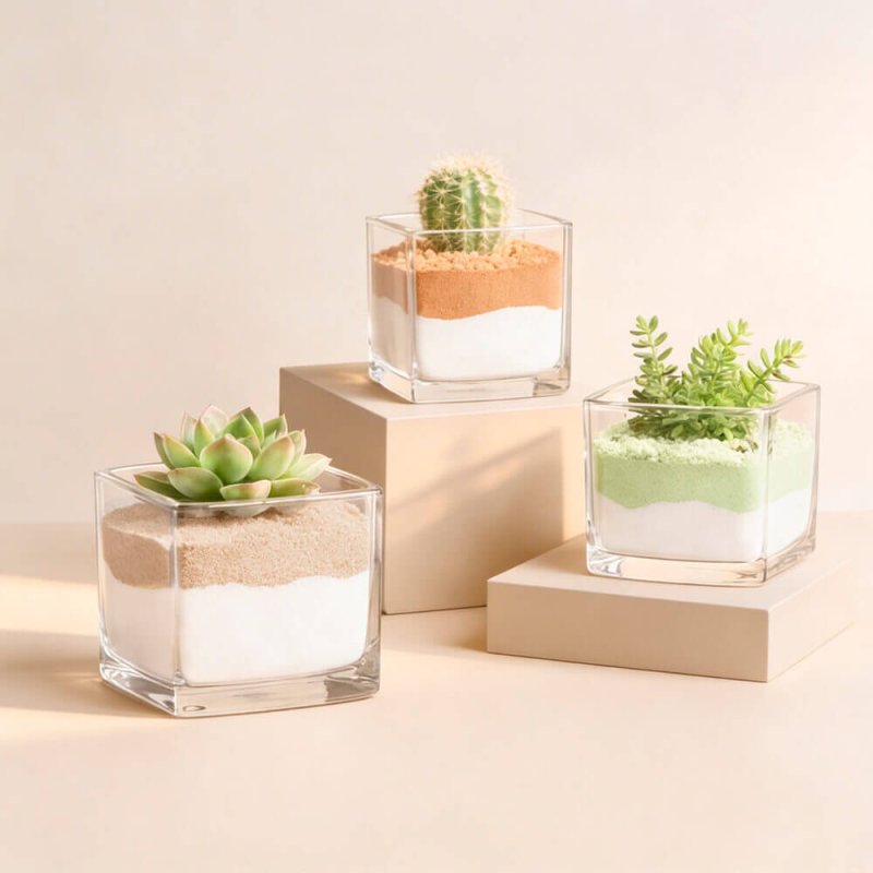 Les sables colorés sont un élément de décoration très polyvalent, en fait ils deviendront le complément parfait aux fanales, bougies, centres de table naturels... Ils offrent de nombreuses possibilités ! Il vous suffit de combiner les couleurs et vous obtiendrez des résultats spectaculaires et exclusifs. Ce sont quelques-unes des idées pour tirer le meilleur parti de toutes les possibilités offertes par les sables colorés.