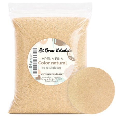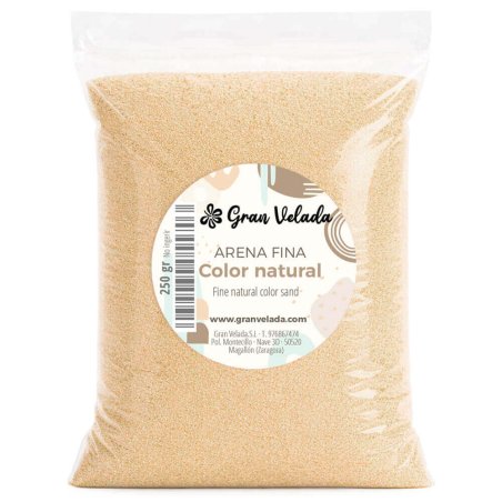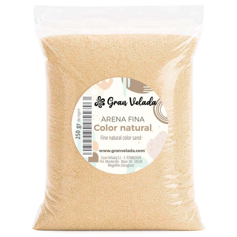 Sable décoratif de couleur naturelle et grain fin, idéal pour l’artisanat, les cérémonies, les centres de table, la décoration ... À Gran Velada, vous pouvez acheter du sable coloré. C’est un produit très polyvalent qui offre de nombreuses possibilités lorsque vous travaillez avec lui. Il est parfait pour être utilisé comme base pour les fanales, pour créer des centres de table avec des bougies, décorer des bouteilles et des vases en verre ou même le parfumer pour préparer des assainisseurs d’air originaux. C’est aussi génial si, lors de votre mariage, vous prévoyez de célébrer la cérémonie du sable. Laissez libre cours à votre imagination avec les sables colorés de Gran Velada!