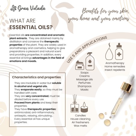 Huile essentielle de muscade, connue pour ses propriétés anti-inflammatoires, c'est pourquoi elle est recommandée pour la fabrication de produits faits maison qui aident à soulager les douleurs musculaires légères, les courbatures, la rhumatismes... À quoi sert l'huile essentielle de muscade ? Vous pouvez l'utiliser comme ingrédient pour formuler des crèmes, des pommades, des sticks pour les coups... De plus, elle peut être utilisée pour fabriquer des huiles de massage et des sachets chauffants qui contribuent à réduire les douleurs menstruelles. On attribue également à l'huile essentielle de muscade des propriétés en aromathérapie. Dans ce cas, elle est considérée comme un bon stimulant et aphrodisiaque, c'est pourquoi elle vous servira à préparer des bougies, des brumes d'oreiller... Obtenez-la maintenant et profitez de tous les avantages et applications de cet ingrédient !