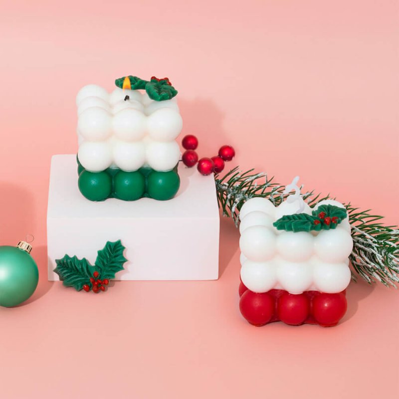 Matériel + instructions pas à pas pour réaliser des bougies bulles de Noël. Avec ce kit, vous pourrez créer 2 bougies en rouge–vert avec un détail de feuilles de houx, parfaites pour décorer ou offrir à Noël. Le kit comprend tout le nécessaire : cire de soja, moule bubble, moule mini feuilles de houx, colorants pour bougies, essence aromatique, mèche et ustensiles. Aucune expérience préalable n’est requise ! Une option pratique, créative et très festive pour profiter du DIY à la maison.