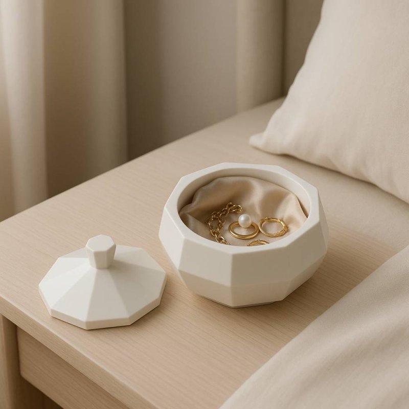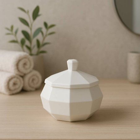 Moule contenant avec couvercle octogonal, idéal pour créer des contenants décoratifs pour bougies ou boîtes à bijoux au style moderne. Ce moule en silicone présente un design géométrique très contemporain, parfait pour les intérieurs minimalistes. Il est composé de deux pièces : récipient et couvercle. Il est souple, antiadhésif et facile à utiliser, ce qui facilite le démoulage et le travail avec des matériaux comme le ciment, la résine à base d’eau ou le plâtre. Vous pouvez le personnaliser à votre goût et l’utiliser pour fabriquer des bougies avec couvercle, ranger des objets ou décorer des espaces. Un moule pratique et polyvalent pour vos créations DIY !