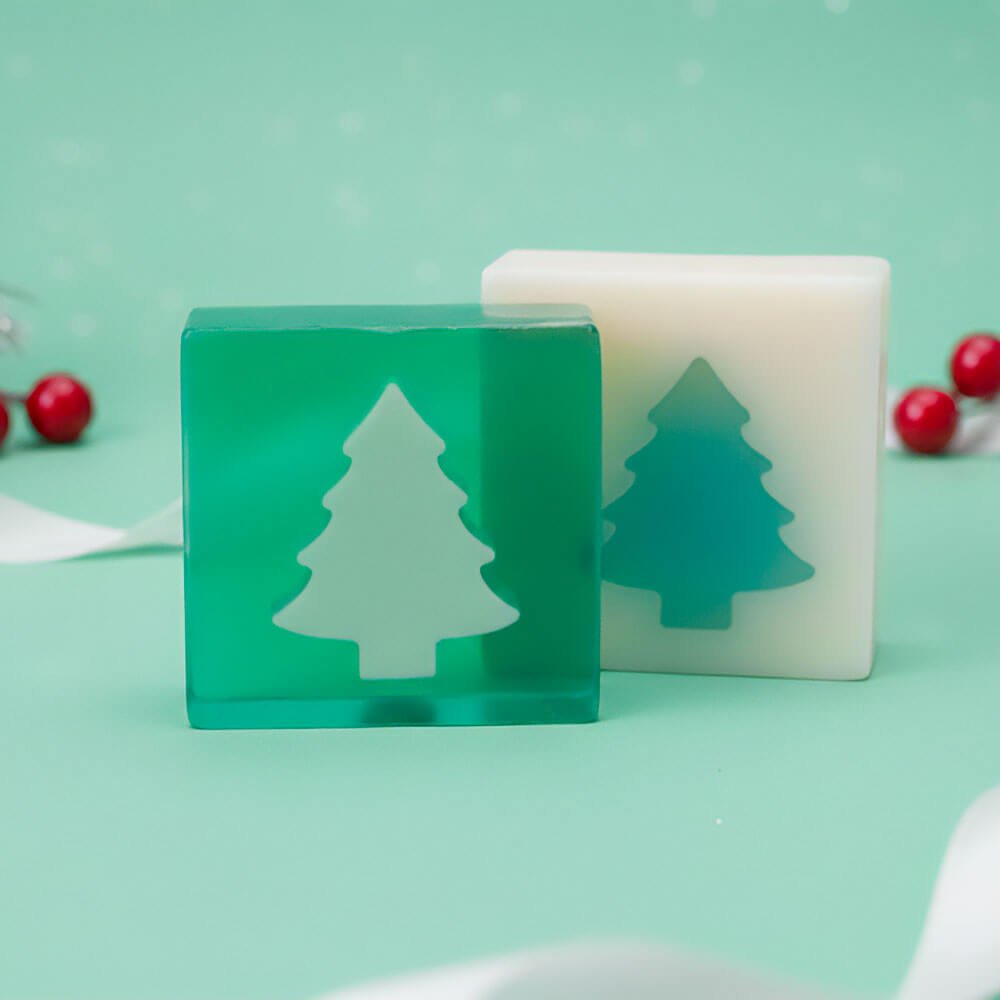 Les savons d’inclusion se caractérisent par l’intégration d’une figure décorative préalablement réalisée à l’intérieur. Dans ce cas, la forme de sapin de Noël apporte une finition attrayante et différenciante, idéale pour les cadeaux, les détails spéciaux ou les productions artisanales.