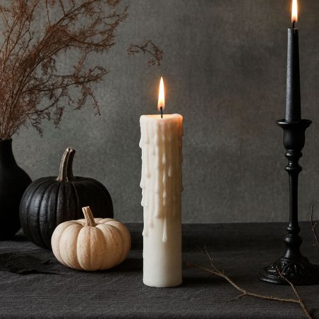 Décor intemporel : en blanc, ivoire ou tons naturels, vous obtiendrez un cierge à coulures élégant pour toute l’année.