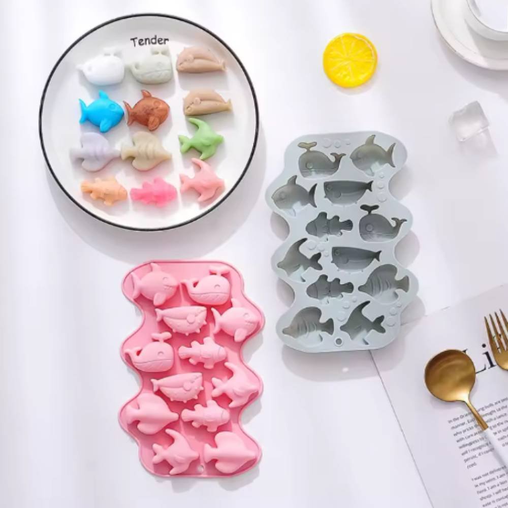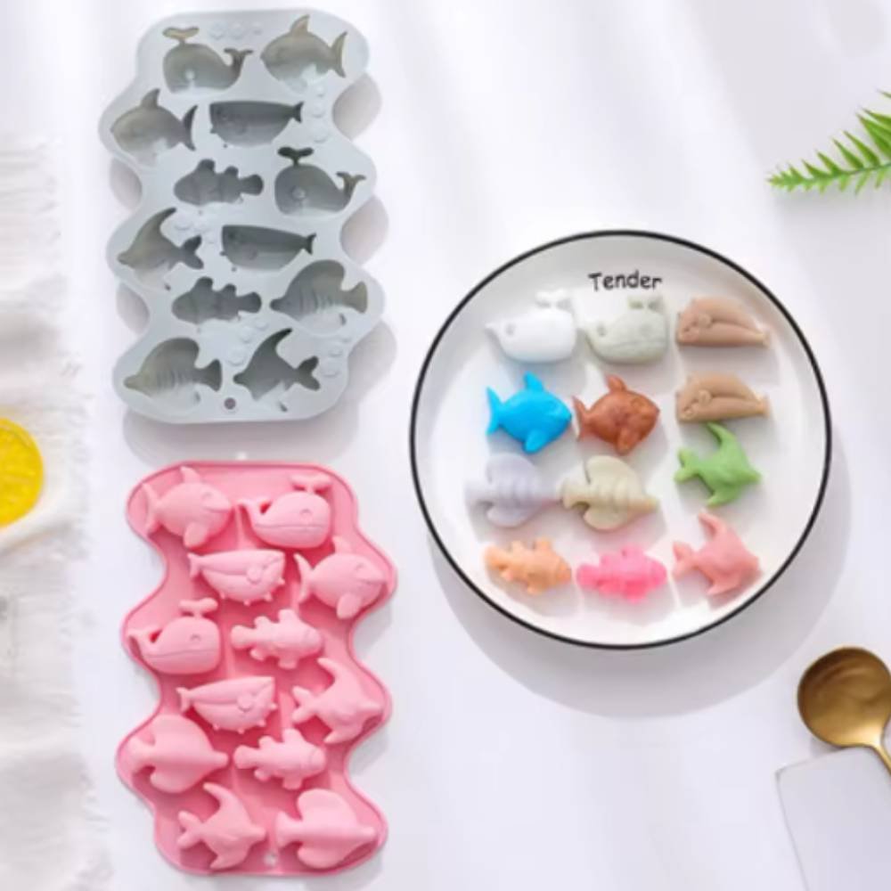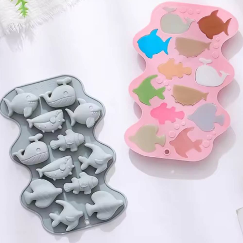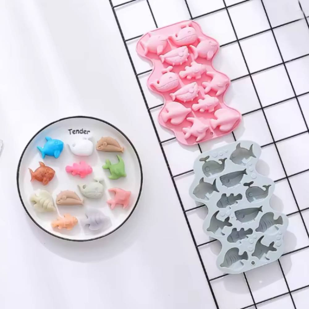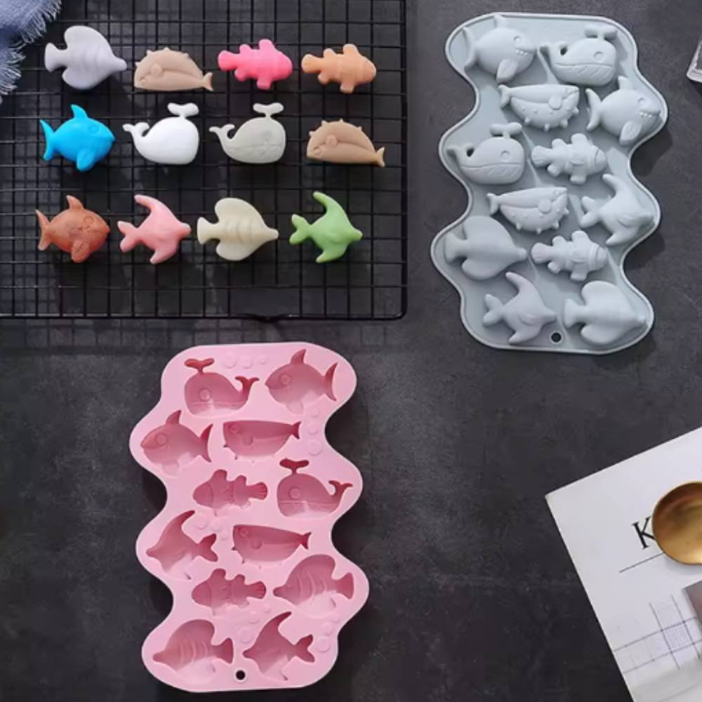 Moule 12 créatures marines, pour réaliser des wax melts (cire parfumée) et des petits savons. Il est fabriqué en silicone souple, résistant et antiadhérent, ce qui évite d’utiliser un agent de démoulage et facilite le nettoyage. Grâce à ses reliefs détaillés, vous obtiendrez des formes parfaites de baleines, poissons et dauphins, idéales pour parfumer, offrir ou utiliser comme cadeaux DIY.