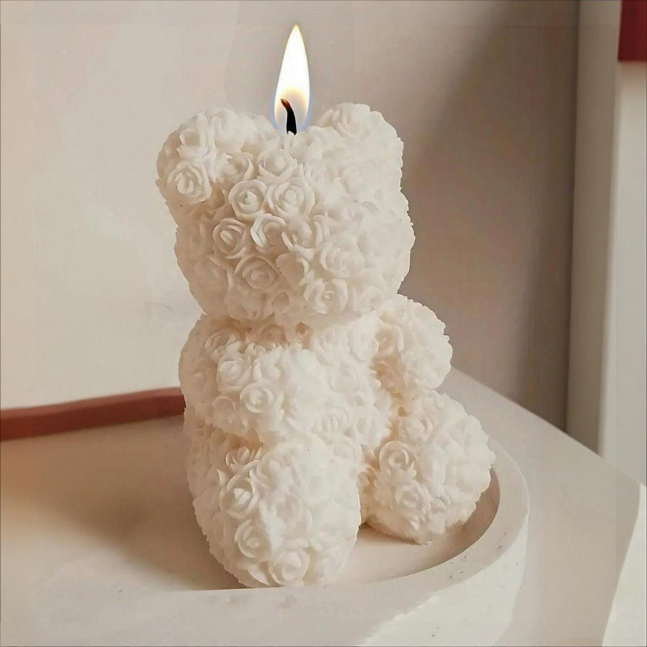 Moule pour fabriquer une bougie en forme d’ourson couvert de roses. Son design détaillé et raffiné permet d’obtenir une bougie avec une finition romantique et élégante. Il s'agit d'un moule en silicone, souple, antiadhésif et résistant, ce qui facilite le démoulage et permet une réutilisation prolongée. Idéal pour des bougies décoratives et des cadeaux spéciaux. Dans notre boutique en ligne, vous trouverez tous les matériaux ainsi qu’un large choix de moules pour bougies et loisirs créatifs.