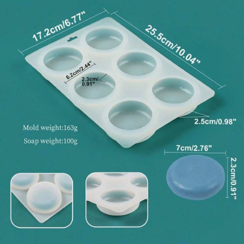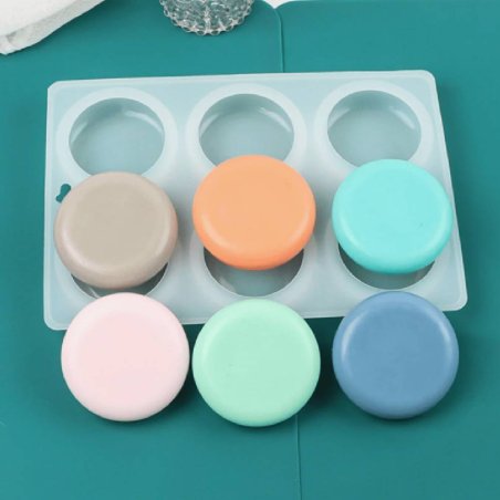 Moule en silicone 6 pastilles rondes, idéal pour fabriquer des savons et des cosmétiques solides au format rond. Il comporte six cavités de 7 cm de diamètre, ce qui permet de réaliser plusieurs pièces en même temps de manière pratique et confortable. Ce moule est flexible, antiadhésif et résistant, ce qui facilite le démoulage et permet de le réutiliser autant de fois que nécessaire. Utilisez-le avec du savon glycériné et des formulations de cosmétique solide.