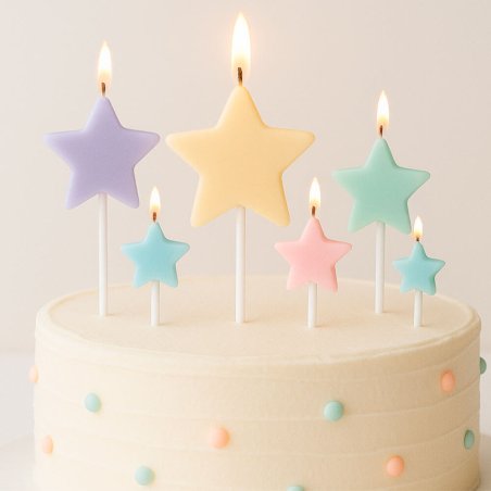 Moule en silicone pour réaliser des bougies pick en forme d'étoile. Parfait pour décorer des gâteaux, offrir ou égayer vos fêtes ! Le moule comprend plusieurs cavités avec des tailles d'étoiles allant de 2,5 à 7 cm. Avec une épaisseur de 0,7 cm, ces formes sont légères, fines et très décoratives.