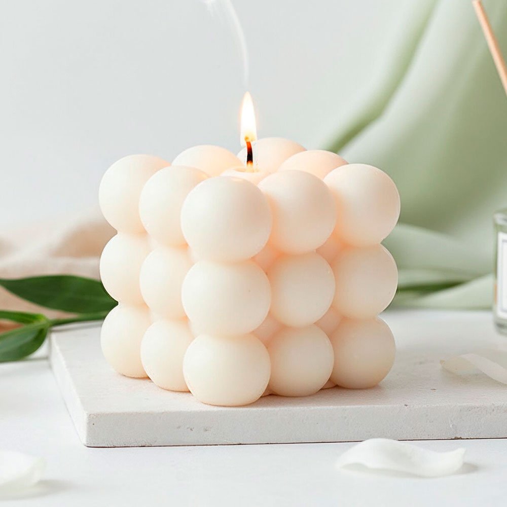 Le moule bougies bulles est en forme de cube et possède 9 boules ou bulles en relief sur chaque côté. Vous trouverez également d'autres modèles parmi les moules les plus célèbres.