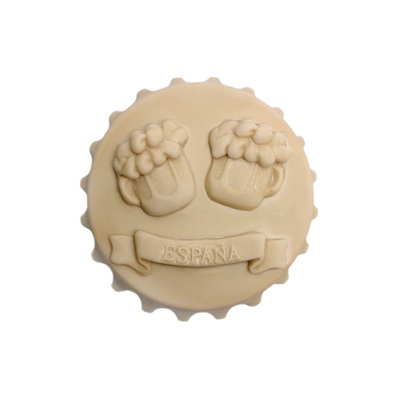 Moule pour faire des savons souvenir de l’Espagne, modèle Brindos de Cerveza. Avec notre moule, vous pouvez faire des savons amusants et uniques, idéaux comme souvenir ou souvenir pour les touristes. Chacun des comprimés ronds a une mesure de 7 cm de diamètre, une épaisseur de 1,5 cm et un poids en savon à base de glycérine, avec le moule complètement rempli de 75 grammes.