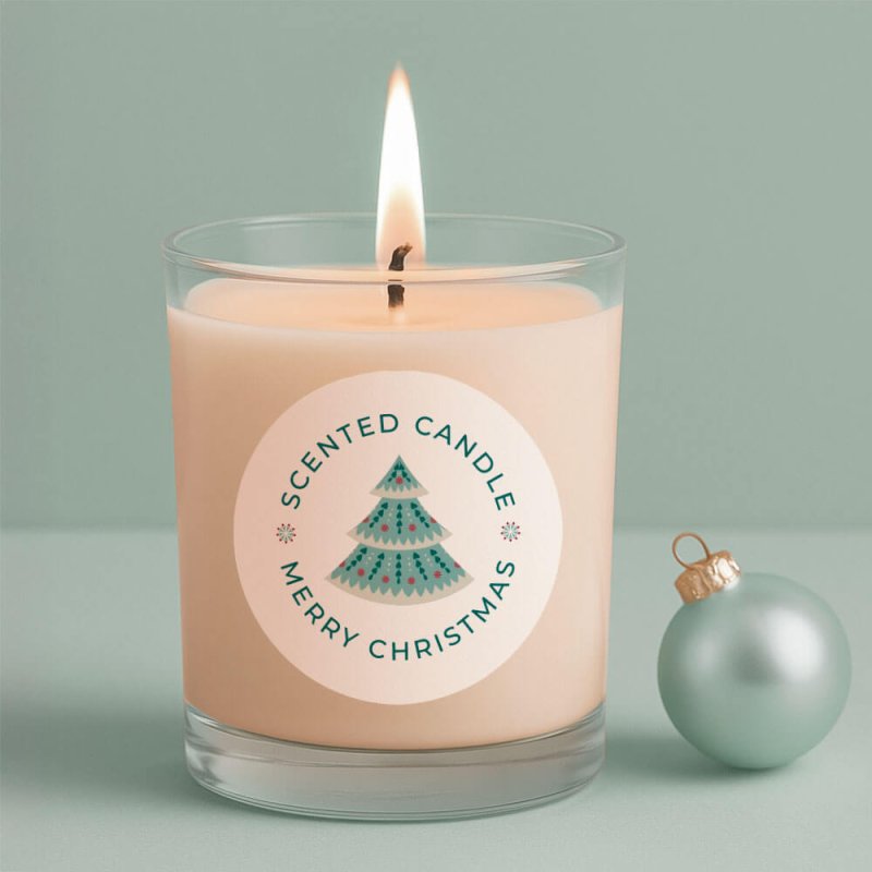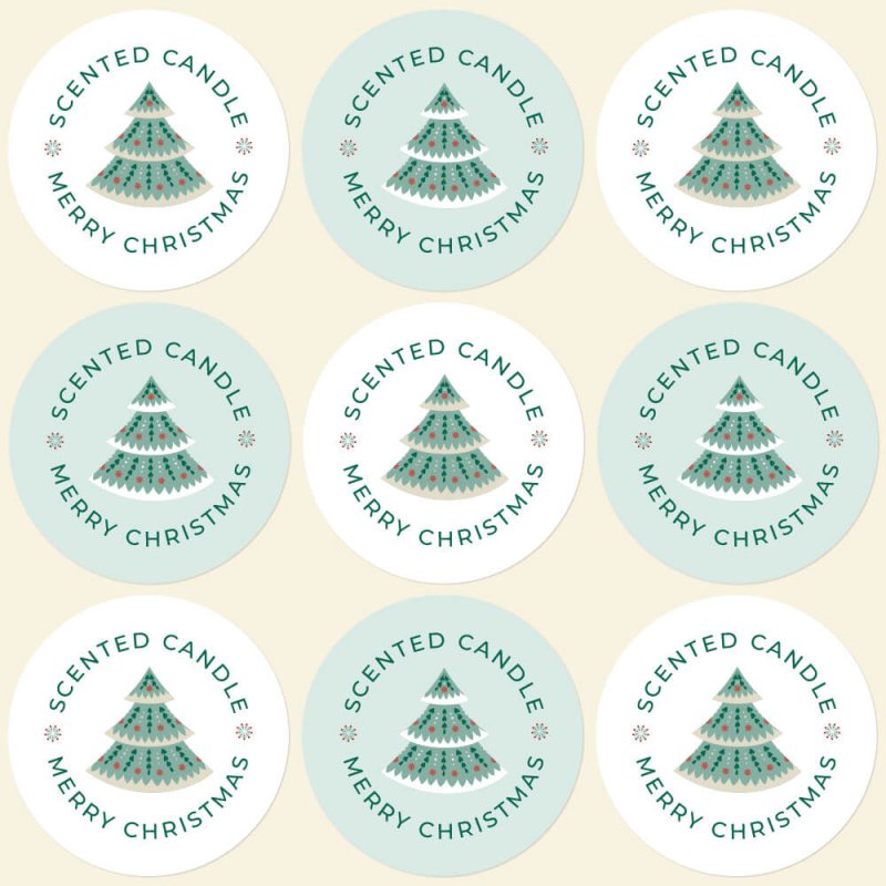 - Produit : autocollants “Sapin nordique · Joyeux Noël” (autocollants pour bougies de Noël)