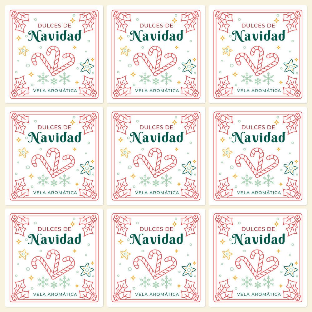 Autocollants “Douceurs de Noël” pour bougies en verre, avec illustrations de cannes en sucre et détails festifs. Parfaits pour décorer vos bougies de Noël et créer de petits cadeaux uniques pour les fêtes. Ces autocollants adhésifs s’appliquent en quelques secondes sur des surfaces lisses comme le verre ou le plastique, offrant une finition soignée et thématique. Idéaux pour personnaliser des bougies DIY, des coffrets cadeaux ou des collections parfumées.