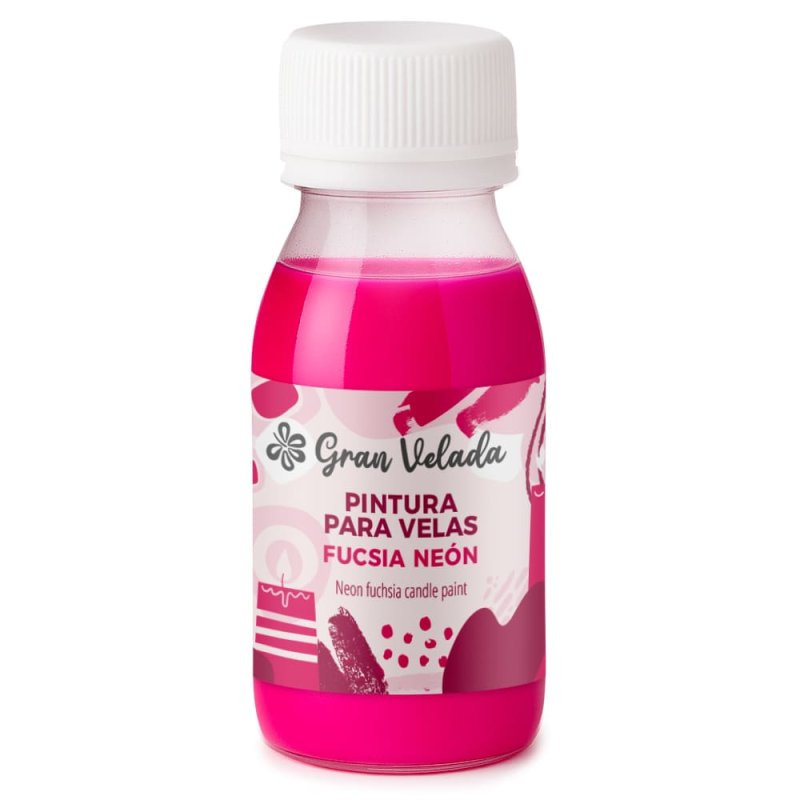 Peinture pour bougies fuchsia néon, idéale pour peindre sur des surfaces en cire. Elle te permettra de décorer les bougies et photophores réalisés à la maison. La peinture pour bougies que tu peux acheter chez Gran Velada est liquide et très facile à utiliser. Il suffit de bien l’agiter puis de l’appliquer au pinceau ou à l’éponge sur la surface à décorer. Séchage rapide. Tu peux également utiliser un pochoir pour obtenir des créations entièrement personnalisées. La peinture pour bougies est l’un des moyens les plus simples de renouveler l’apparence des bougies que tu as déjà chez toi. Procure-t’en facilement sur notre boutique en ligne !.